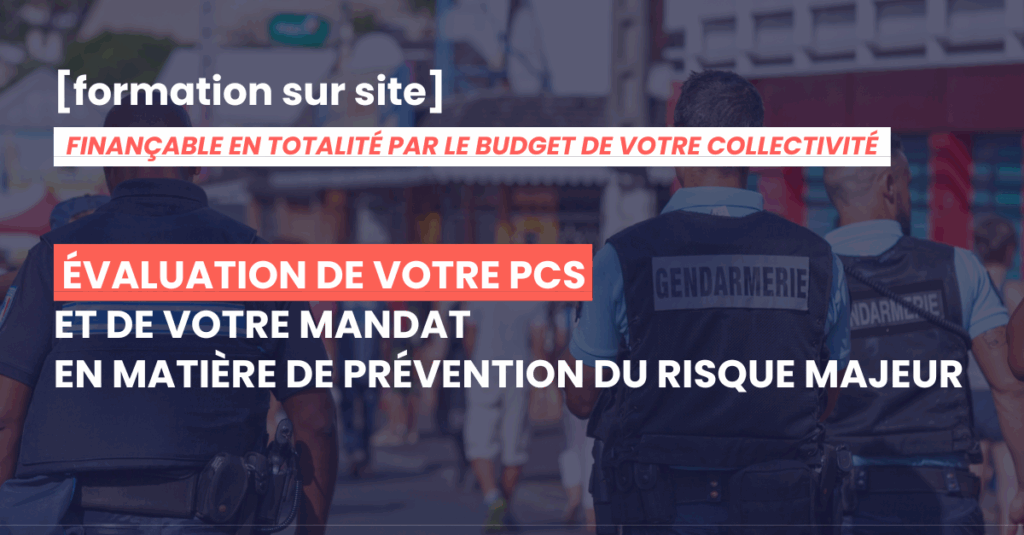 ATTENDUS DE LA FORMATION : la présente formation individuelle permet à l’élu stagiaire de comprendre et d’évaluer la conformité et l’opérationnalité du Plan Communal de Sauvegarde (PCS) existant ou de disposer de l’ensemble des bases pour le créer.