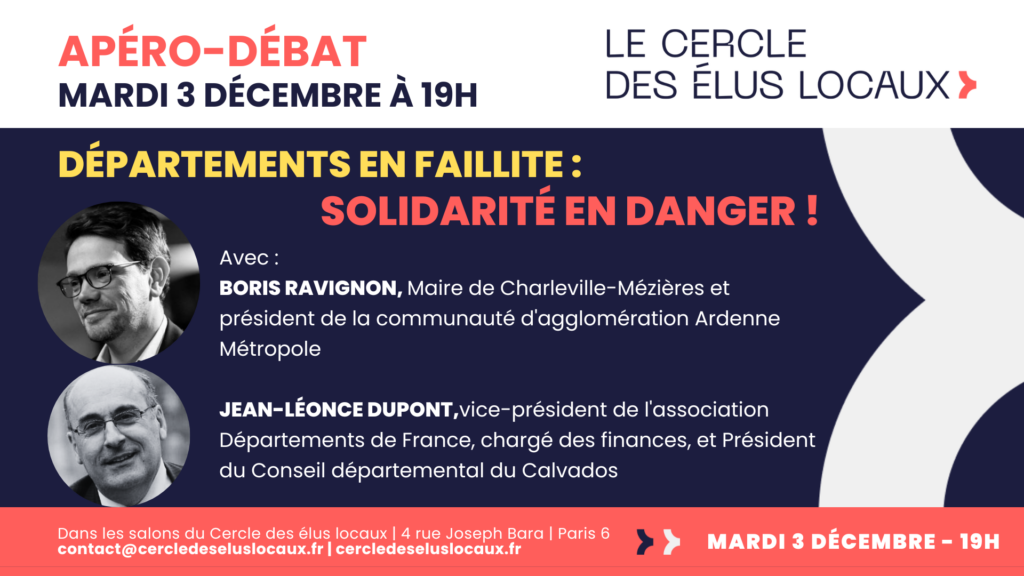 Pour mieux comprendre les raisons de cette faillite annoncée et mesurer son impact sur nos politiques de solidarité, le Cercle des élus locaux vous invite à son prochain apéro débat mardi 3 décembre prochain à 19h.